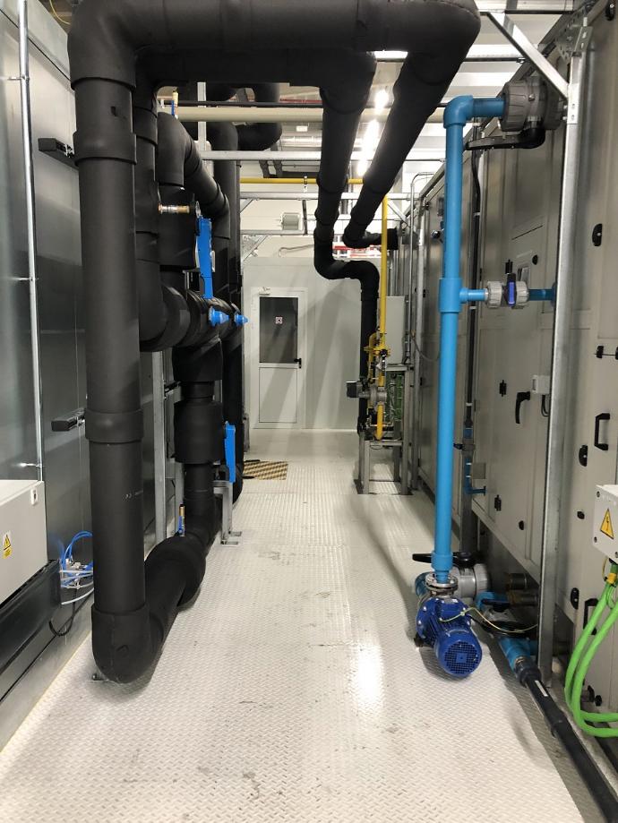 Equipos de climatización y tratamiento del aire de proceso, con regulación automática controlada por el sistema de automatización industrial.