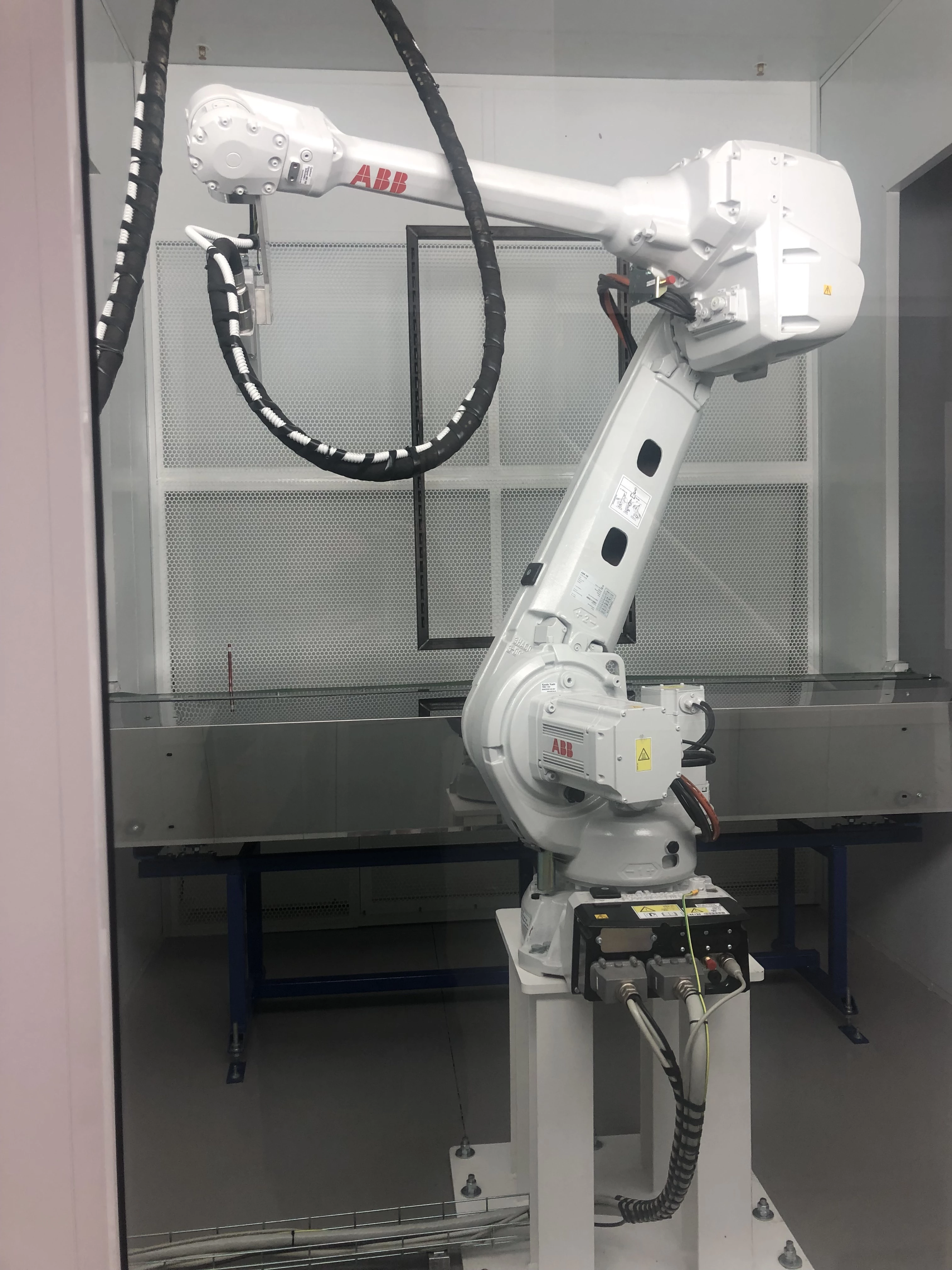Robotic booths with flaming equipment for the correction of the surface tension of plastics such as polypropylene.
